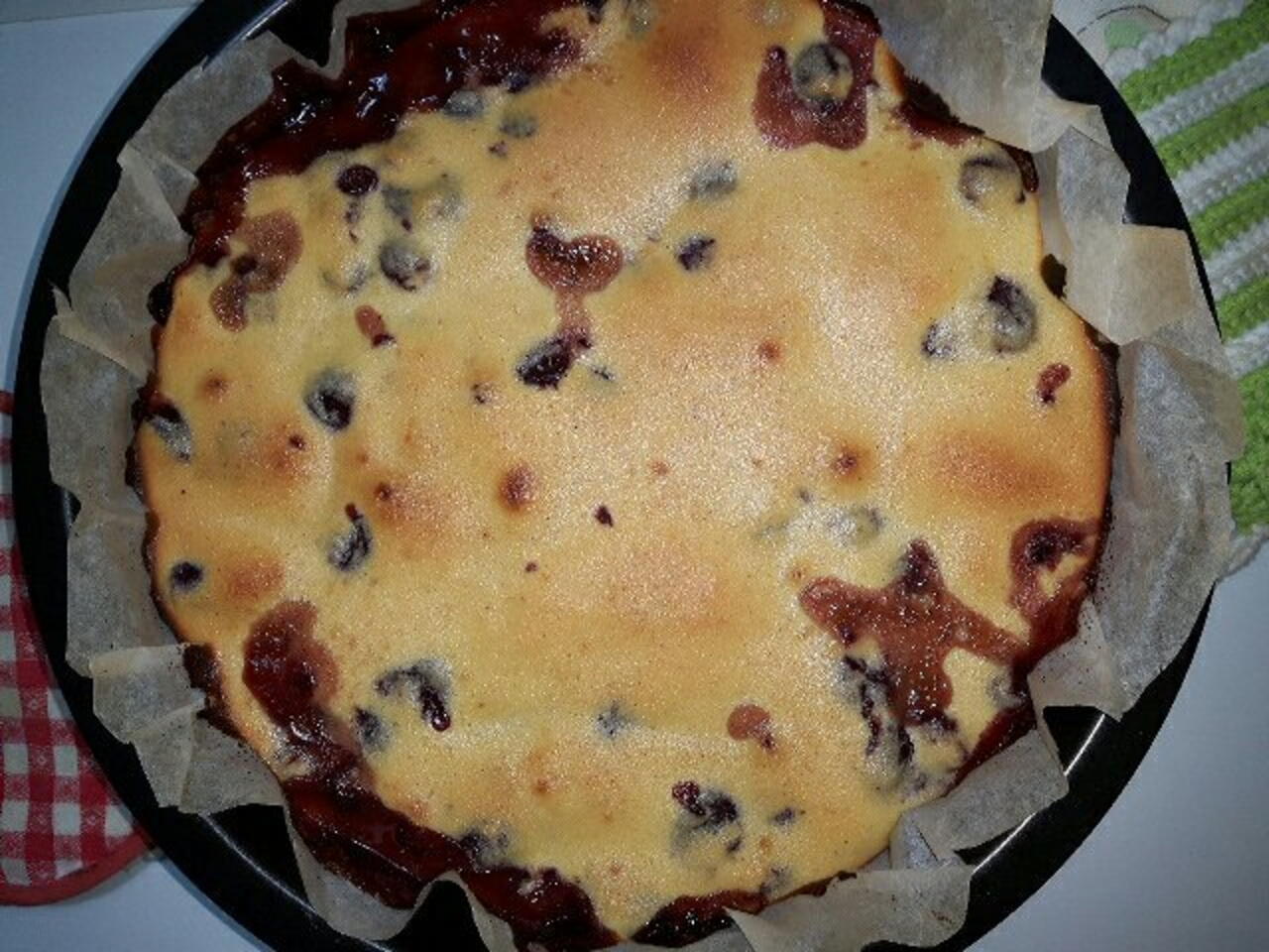 Spread butter over the tray or sort out greasy paper. Put cherries in the tray (round approx.20-22 cm). Pour the mixture over the cherries and bake approx 30 minutes.