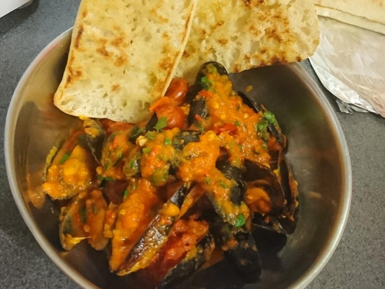 Mussels in Tomato and Peppers