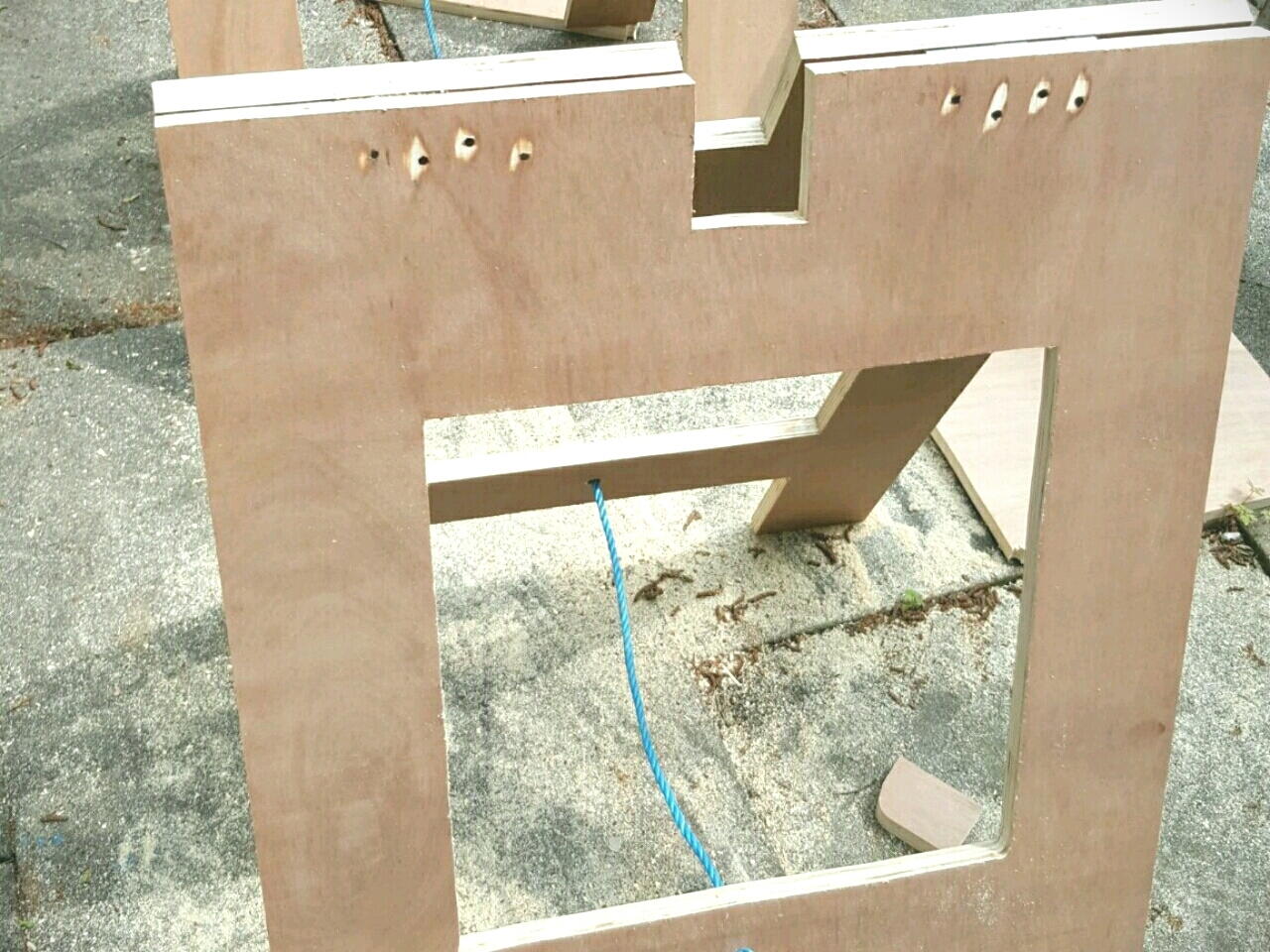 Measure the desired hight you wish to work at once it's built. cut to length and shape/design. drill holes for rope to go thru. And mind your fingers using power tools and Wear eye protection