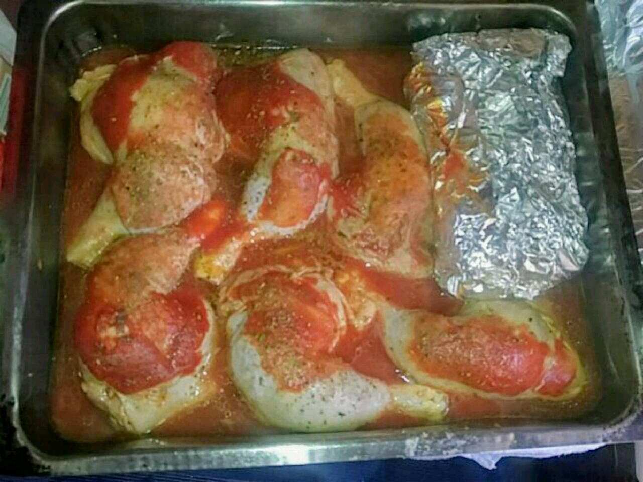 Τελος Ρίχνουμε τι σάλτσα λιγο νεράκι αλατακι - πιπέρακι και αν βάλατε περισσότερο γεμίσει τι βάζουμε δίπλα σε αλουμινόχαρτο ψήνουμε στους 180 με 200 ° για περίπου 1 με 1 30 ωρα. καλη επιτυχία !!!!😀
