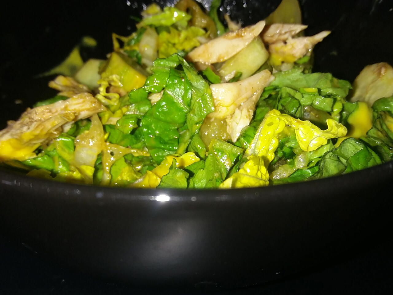 Κόβουμε το μαρούλι,το αγγούρι,την πιπεριά& το κοτοπουλο προσθέτουμε λάδι,αλάτι,ξύδι βαλσάμικο&μουστάρδα.Τέλος τα ανακατεύουμε όλα μαζί και είμαστε έτοιμοι για μια γευστική σαλάτα.