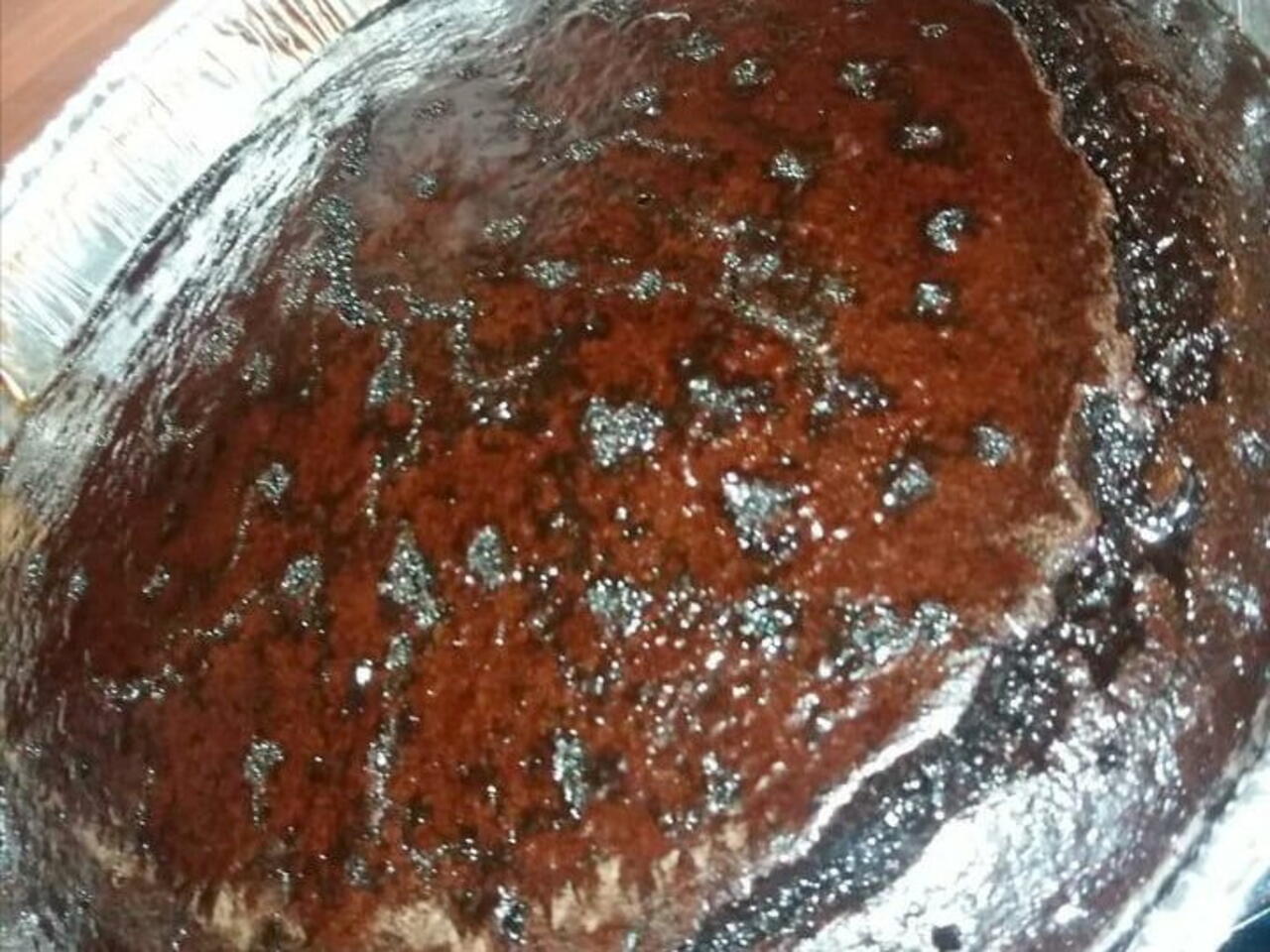 Βάζουμε το σιρόπι στη φωτιά,όταν πάρει βράσει το αφαιρούμε και ανακατεύουμε λίγο. Μετά ανακατεύουμε στο μίξερ τα 4 πρώτα υλικά ( τα έχω βάλει με την σειρά όλα). Αφού προσθέσουμε το ηλιέλαιο και το νερό χτυπάμε για 1'. Ρίχνουμε τα υπόλοιπα αλλά ανακατεύουμε με μια μαρίζ σιγά και όχι με γρήγορες κινήσεις. Μπορούμε να το βάλουμε σε ένα μεσαίο ταψάκι μιας χρήσης ή σε ένα ταψί με διαστάσεις 32×25. Ψήνουμε σε προθερμασμένο φούρνο στον αέρα στους 170°C για 30'.Όσο είναι καυτό ρίχνουμε το σιρόπι!
