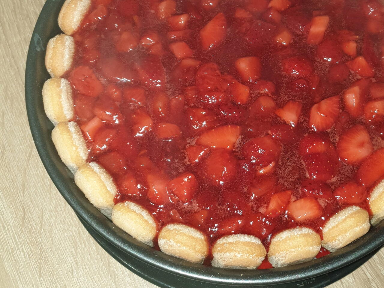 Biscotte savoiarde poslagati po obliku kalupa ili tepsije te dodati prethodno pripremljen puding od vanilije. Stavit u hladnjak da se stegne