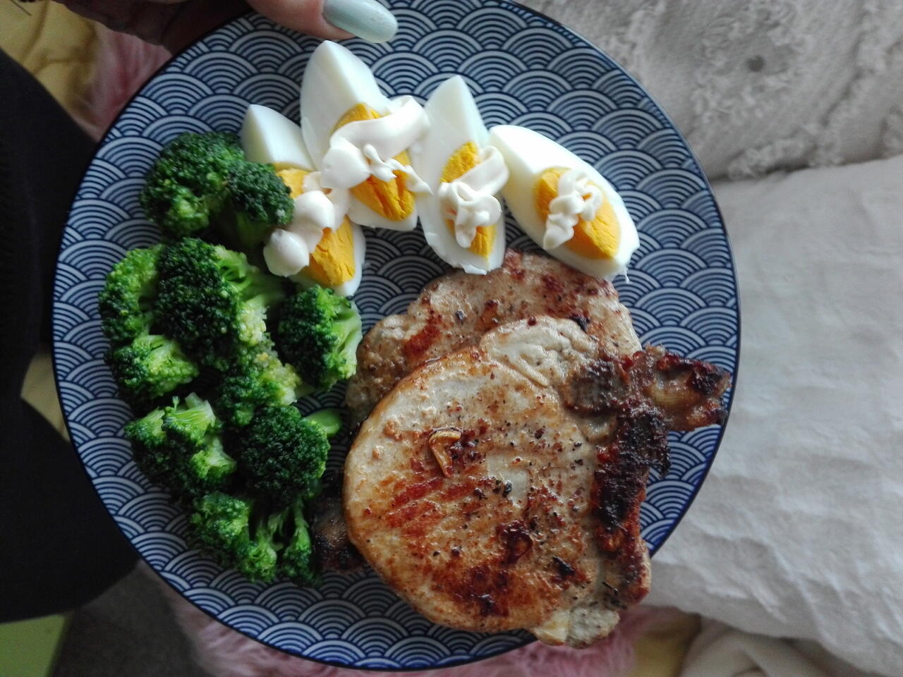 Serviram kao na slici; jaja narežem na četvrti ili polovice i stavim majonezu preko njih, a meso i brokulu samo stavim na tanjur.
