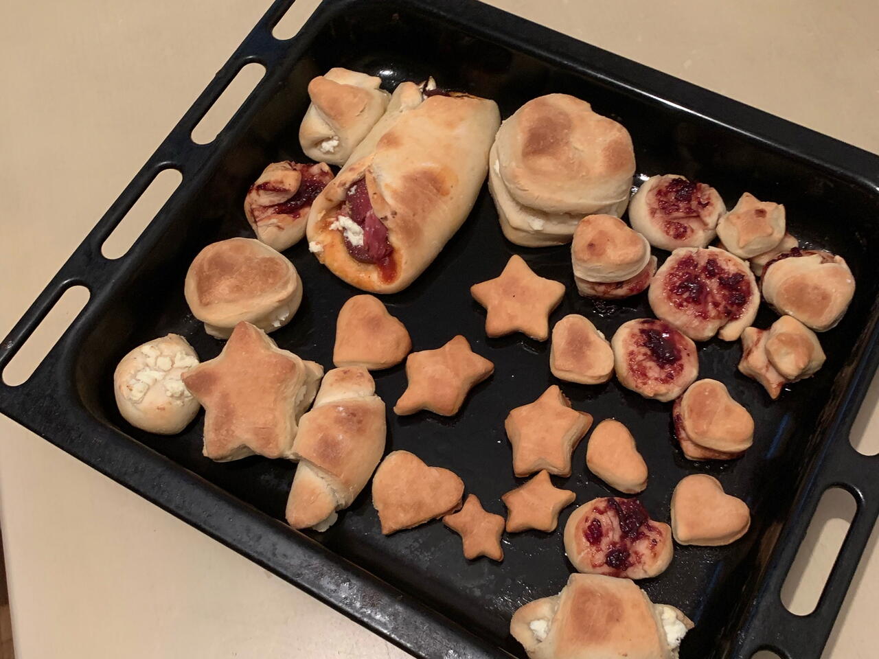 Svu smesu napravite rucno i izlijete na sto uzmete oklagiju i razvijete. Ja sam jedan deo napravila slan sa sirom a jedan deo sladak sa dzemom. Mozete i da stavite eurokrem umesto dzem. Pecete na 200 stepeni oko 20 minuta pratite dok pecete.Mozete istu smesu za testo ovo da koristite i za pizzu,sve isto izlijete na sto i napravite sastojke za pizzu. HVALA STO PRATITE MOJE POSTOVE! PRIJATNO! 🙂