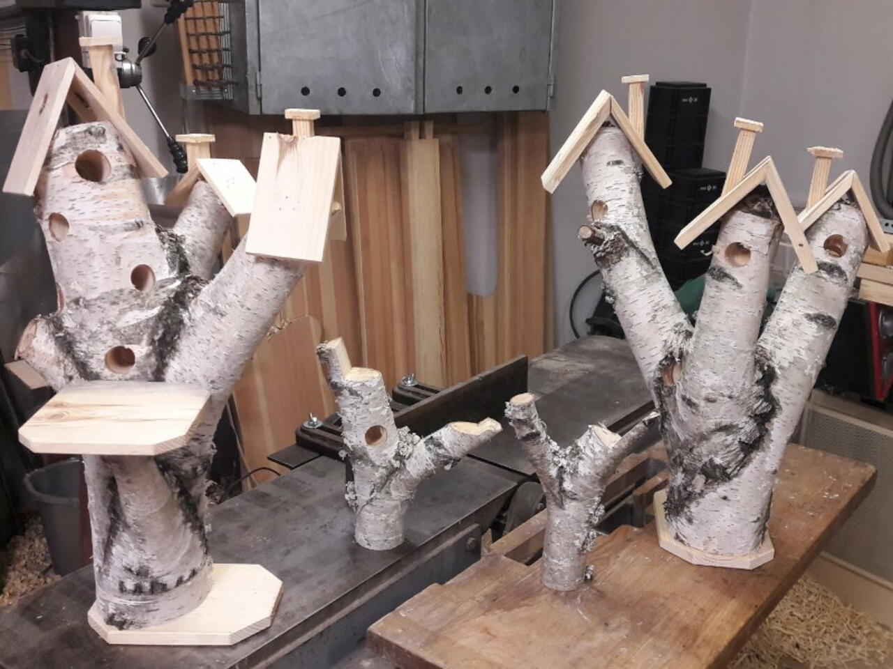 Adott volt egy kivágott nyírfa. Sajnáltam volna eltüzelni, ezért 2 éve 1-1 ágat, gallyat vagy éppen törzs darabot feldolgozok egyszerű dekorációs alapanyagnak, aminek a díszítését a feleségemre bízom a továbbiakban.