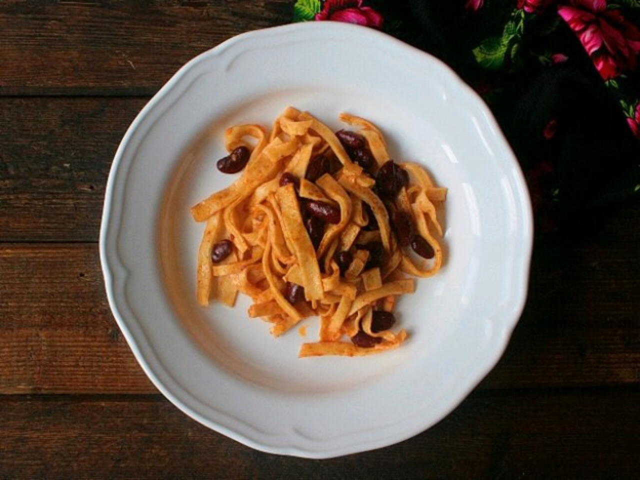 Mikor a bab már szépen megpuhult, a főzővizébe teszem a tésztát. Kb. 3-4 percig együtt főzöm, majd leszűröm a babot és tésztát. Végül összeforgatom a paprikás zsíros hagymával.