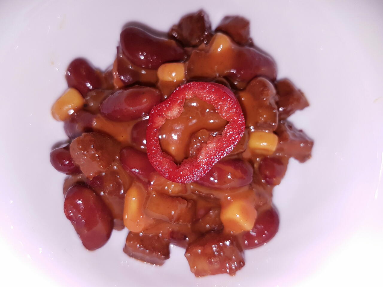 A kolbász feldobja az ízét, állagát. Akár önmagában is fogyasztható a bab miatt, de adható rízs, vagy burgonya mellé is, mint egy mexikói stílusú fogás. Ez a verzió nem csípős, de chilli por, vagy cayenne paprika hozzáadásával csípősen is elkészíthető.