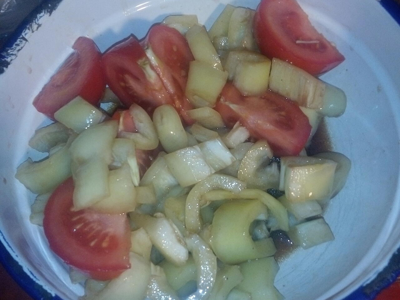 Bele tesszük a vizet majd rá öntjük a paprikára ès a paradicsomra.