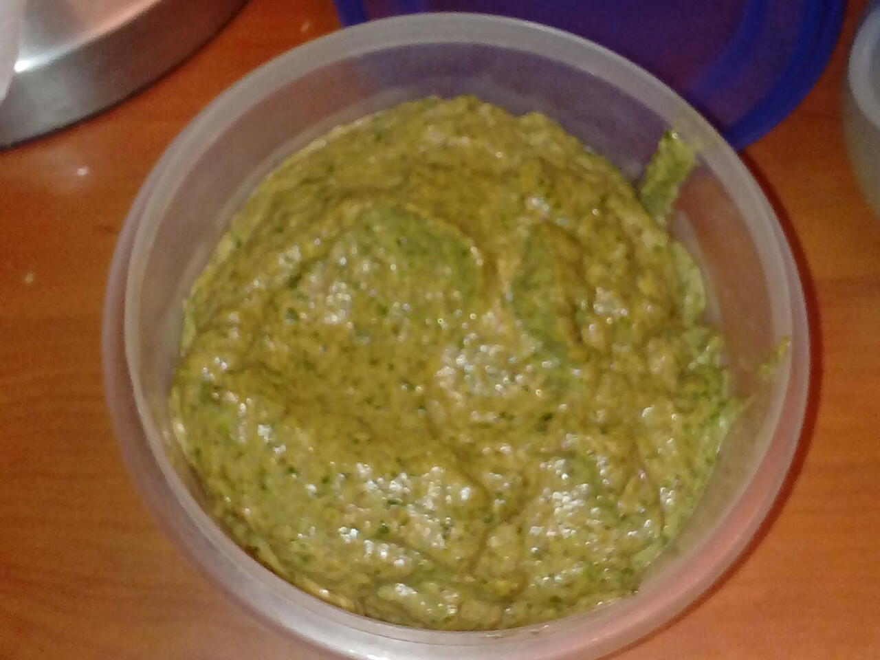 Az első lépés hogy meg mosuk a spenotot. Majd apróra vágjuk és bele teszük a turmixgépbe. És össze turmixtoljuk.