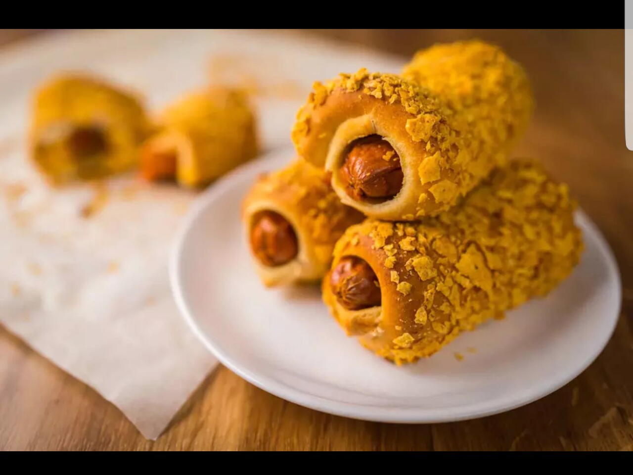 A két felhajtatlan szél egyikére rátesszük a virsliket, és ebből az irányból felcsavarjuk a hot dogokat.