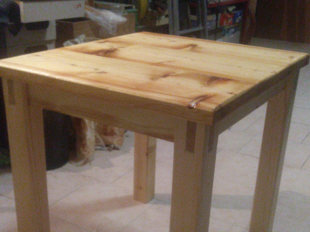 Piallare e carteggiare le assi, fissarle con colla e spinette. Incastro a croce per traversi e gambe. Con i chiodi stabilizzare il tavolino a livello dei traversini.