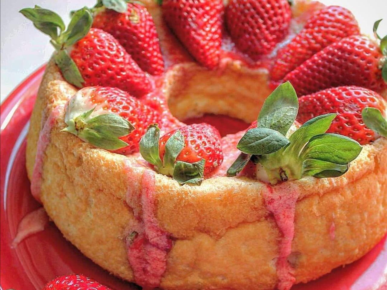 e la lasciamo raffreddare completamente .Una volta raffreddata la tiriamo fuori dal nostro stampo e prepariamo la glassa Prendiamo 3/4 fragole e le frulliamo In un piatto aggiungiamo 200g di zucchero a velo e versiamo qualche cucchiaio di succo di fragole e iniziamo a mescolare con una frusta E aggiungiamo un cucchiaino di burro fuso E la nostra glassa e pronta Versare la glassa sulla torta raffreddare Decorare a piacere con le fragole Si conserva in frigo massimo 3 giorni.