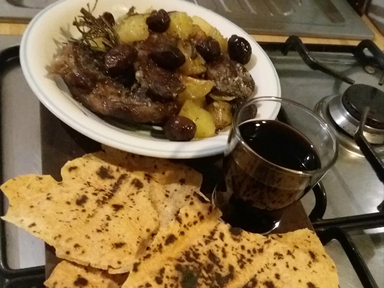 Ungere la teglia con olio d' oliva extravergine ...adagiarvi le patate tagliate a tocchetti ...posizionare la carne sopra e condire con rosmarino qualche foglia di mirto e del sale grosso...un filo d'olio e infornare a 180ยฐ...