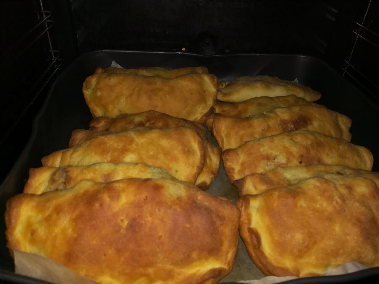 Fate l impasto con la farina, sale, olio, lievito e acqua. Fare riposare almeno mezz'ora l impasto. Preparare il condimento tagliando a cubettini: il cavolfiore, le patate, la cipolla, la salsiccia, i pomodori secchi e condire il tutto. Inserire il condimento all interno Dell impasto a forma di mezzaluna. Informare a 200 gradi.