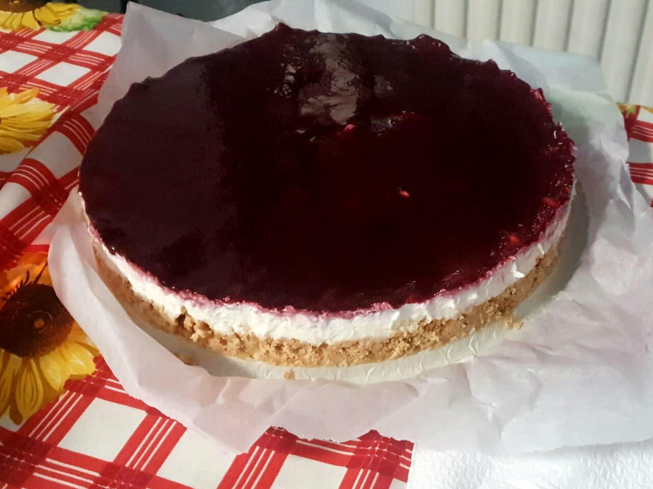 Mettere la gelatina in ammollo con l acqua fredda. Mettere i frutti in un padellino far cuocere 5 min con lo zucchero, poi aggiungere la gelatina di pesce ben strizzata nei frutti. Frullare il tutto con un frullatore a immersione e passare il tutto in un colino . Poi aggiungere la salsa alla cheesecake e rimettere in frigorifero per altre 2 o 3 ore