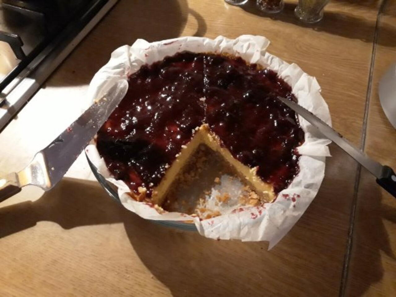 Una volta terminata la cottura e aver lasciato raffreddare il tutto..cospargere la cheesecake con la marmellata ai frutti di bosco