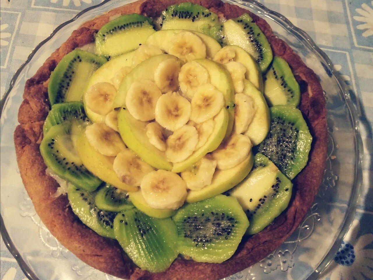 Stendete l’impasto della crostata di frutta con il mattarello su un tavolo infarinato.Cospargete la tortiera di olio e farina e poggiate l'impasto attorcigliando la base sopra e bucarellate l'impasto.Aggiungete sopra l'impasto la carta forno e i fagioli secchi.Cuocere in forno preriscaldato a 180° per una ventina di minuti. Togliere i fagioli e cuocere altri dieci minuti.Sfornate e lasciate raffreddare.Aggiungete la crema e poi la frutta.