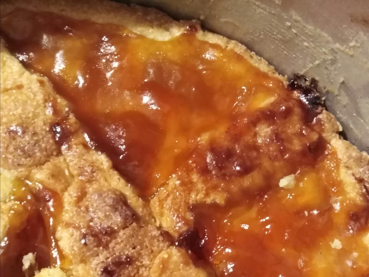 Nel frattempo imburrate uno stampo da crostata di 20 cm di diametro.Riprendete la pasta frolla dal frigorifero ed utilizzatela per foderare tutto lo stampo.Bucherellate il fondo di frolla con i rebbi di una forchetta.Farcite la crostata con la marmellata e decorate la superficie con fettucce di pasta frolla. In forno a 180 per 30 minuti.