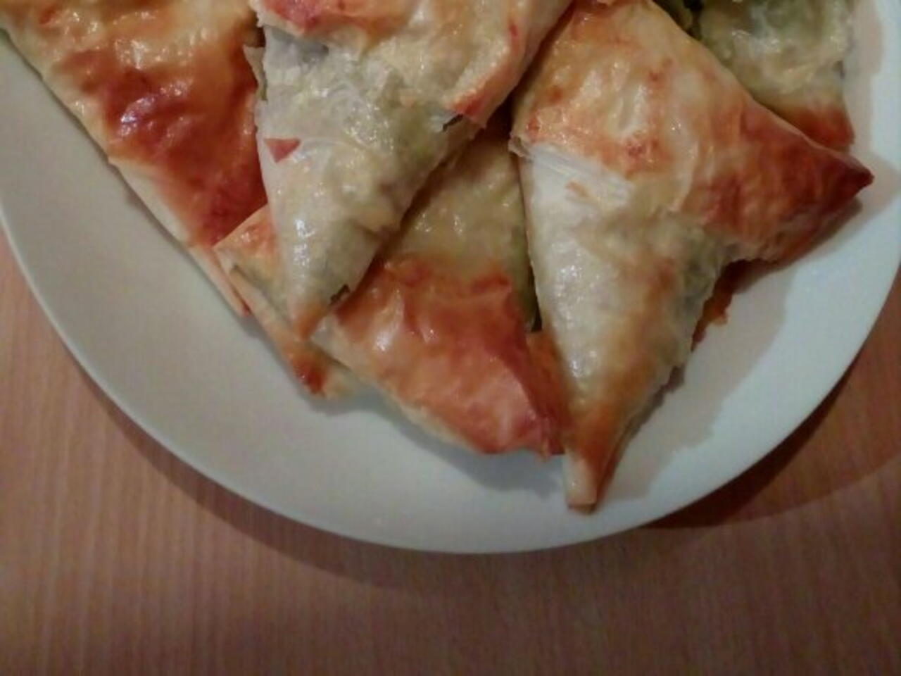 Riempire con 2 cucchiai di ripieno la parte piΓΉ bassa delle strisce di pasta fillo,tagliare a cubetti la mozzarella ed aggiungerla al resto.Chiudere creando un triangolo di pasta, rigirando i lati a chiudere completamente.