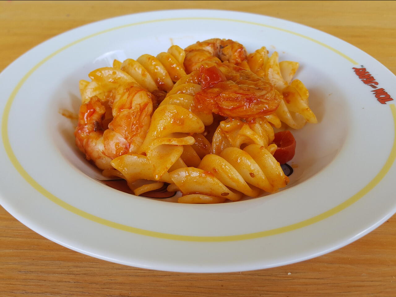 Consiglio: prima di cuocere i gamberi con i pomodorini fateli marinare col olio, sale e timo per dieci minuti cosí quando li unirete ai pomodorini daranno piú sapore al sugo