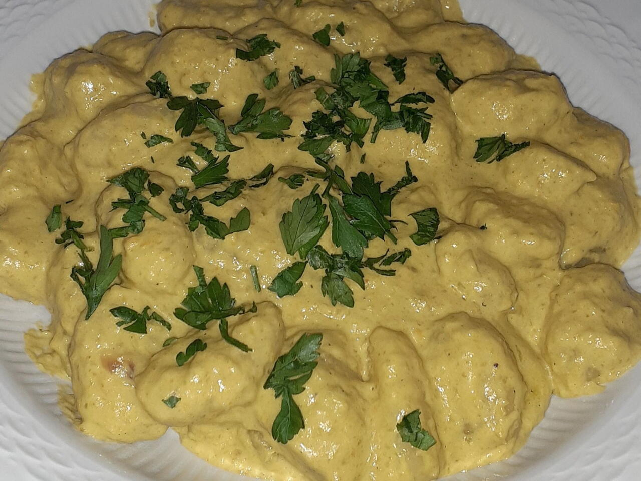 In fine scolare i gnocchi e aggiungerli alla crema con un po' di prezzemolo.