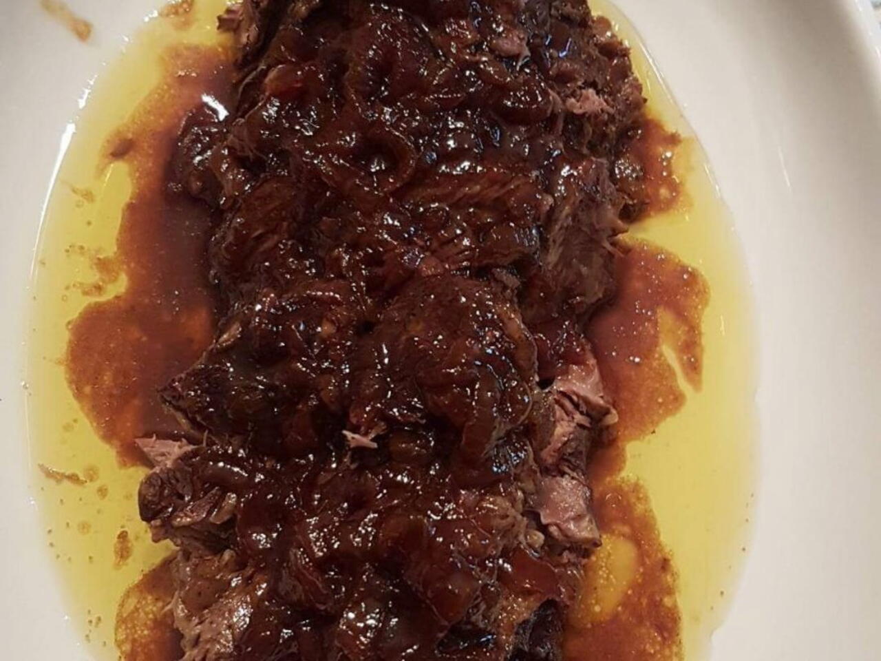 Nel frattempo Taglia la cipolla a rondelle e poi a metΓ , mettere a rosolare insieme alla carne, aggiungere la salsa worcestershire e fai sfumare