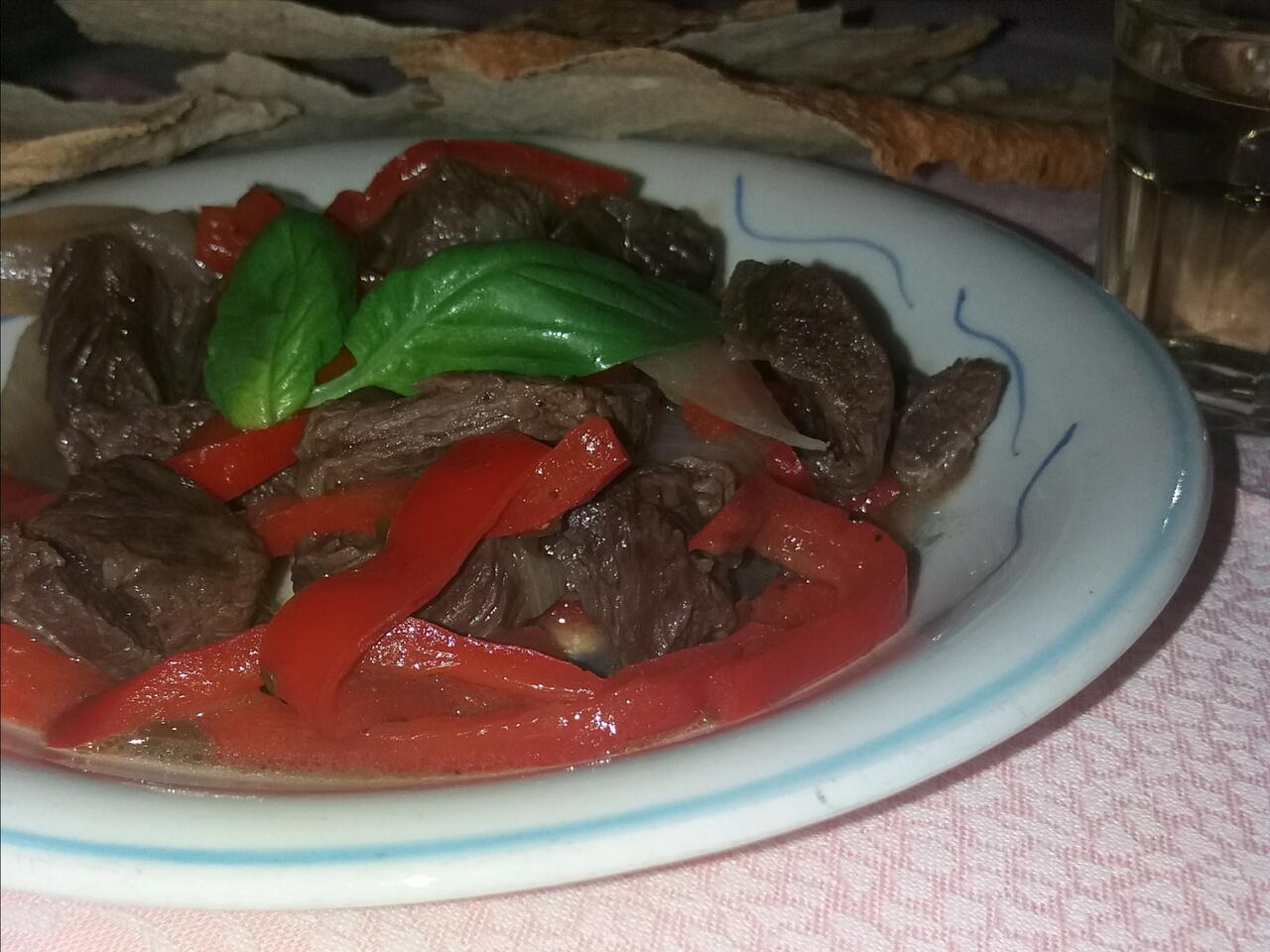 Carne succosa e molto apetitosa viene accompagnata da gusti rustici e forti quali cipolla e peperone riescono a dare... Buon secondo piatto , gradevole se servito in compagnia di un buon vino bianco ...