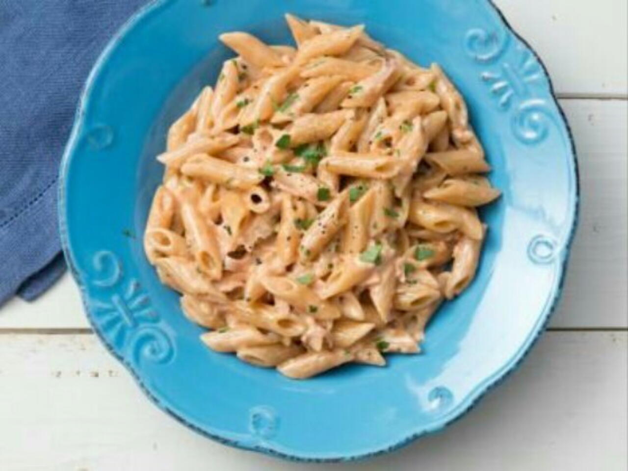 Nel frattempo cuocete anche la pasta (7) e scolatela al dente trasferendola direttamente nel tegame con il condimento. Regolate di sale e di pepe; aggiungete il prezzemolo tritato, mescolate il tutte e servite le vostre penne ancora calde.