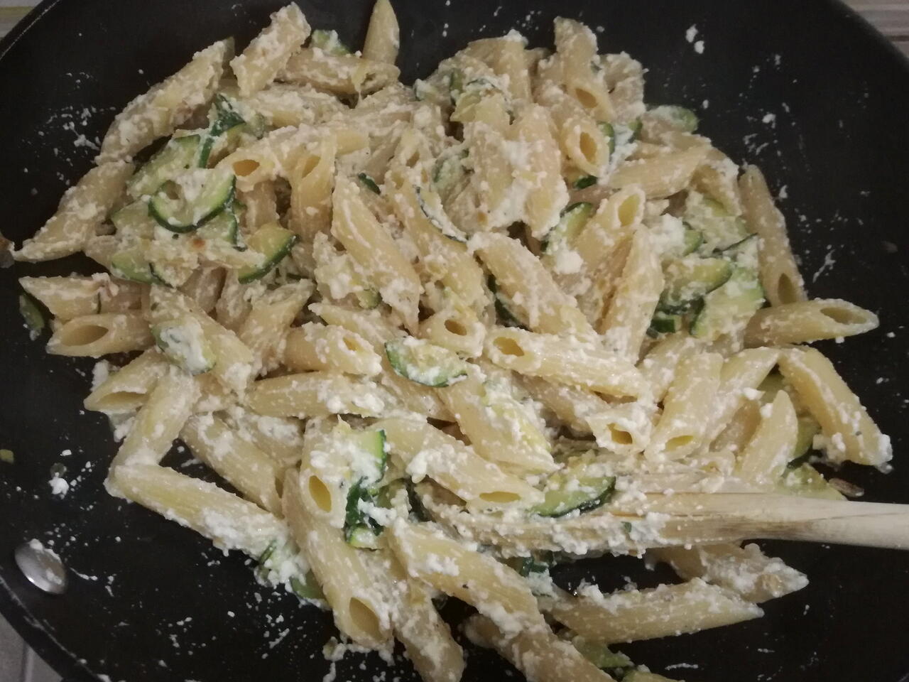 A cottura ultimata, scolare la pasta al dente e aggiungerla al sugo preparato, facendo saltare il tutto in padella a fuoco moderato, in modo che gli ingredienti si mescolino a dovere. Servire calda.