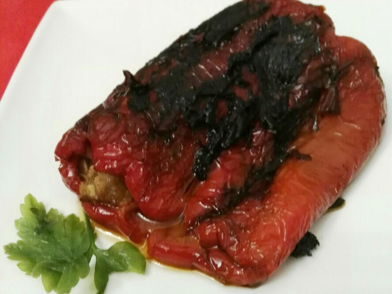 Svuotare il peperone dalla parte del picciolo ma lasciarlo integro, riempire con l impasto