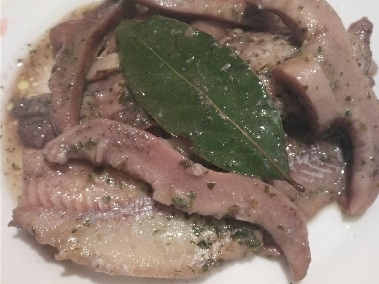 L'abbinare il pesce di mare con dei funghi particolarmente gustosi e carnosi come le colombine verdi , porta in tavola una ricetta che ha una consistenza apprezzabile . L'aroma di alloro accompagna bene questo piatto unico nell suo genere .