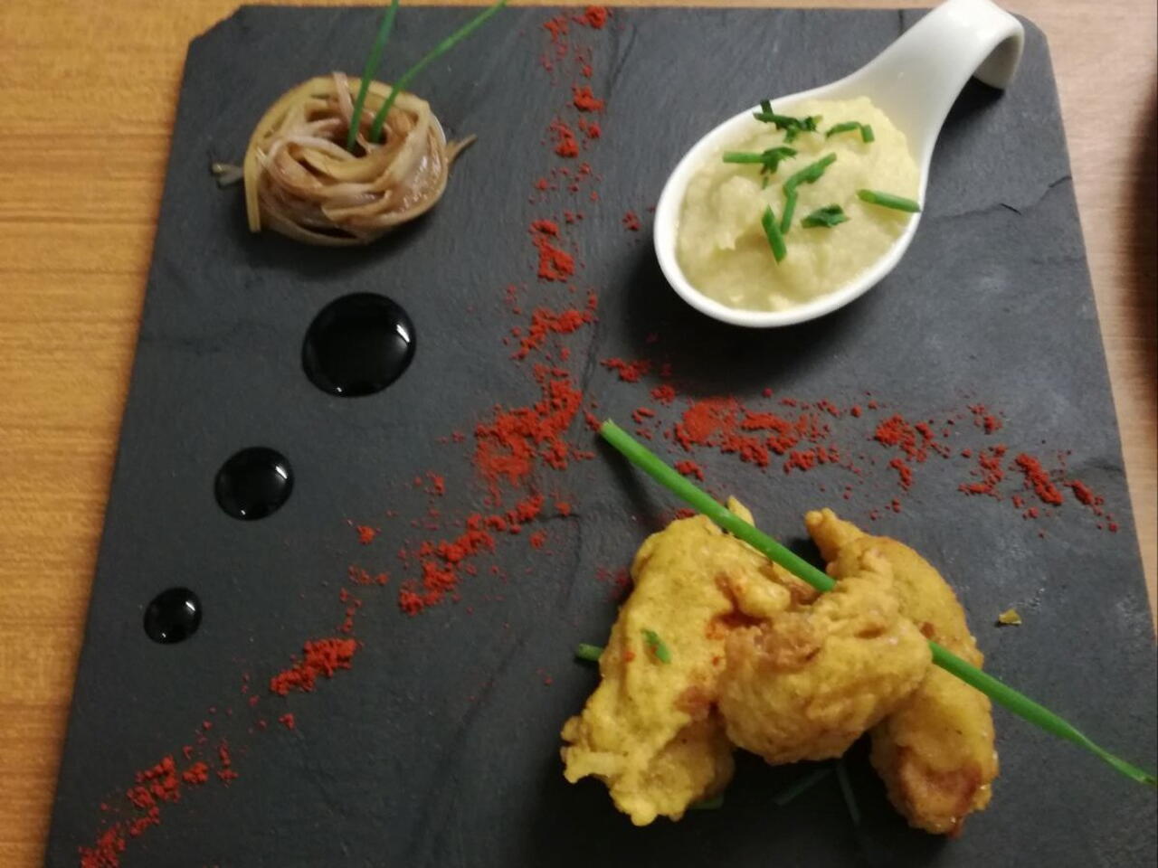 Piatto fusion ,con i sapori che si legano molto bene,lo consiglio a chiunque,da provare una volta nella vita.