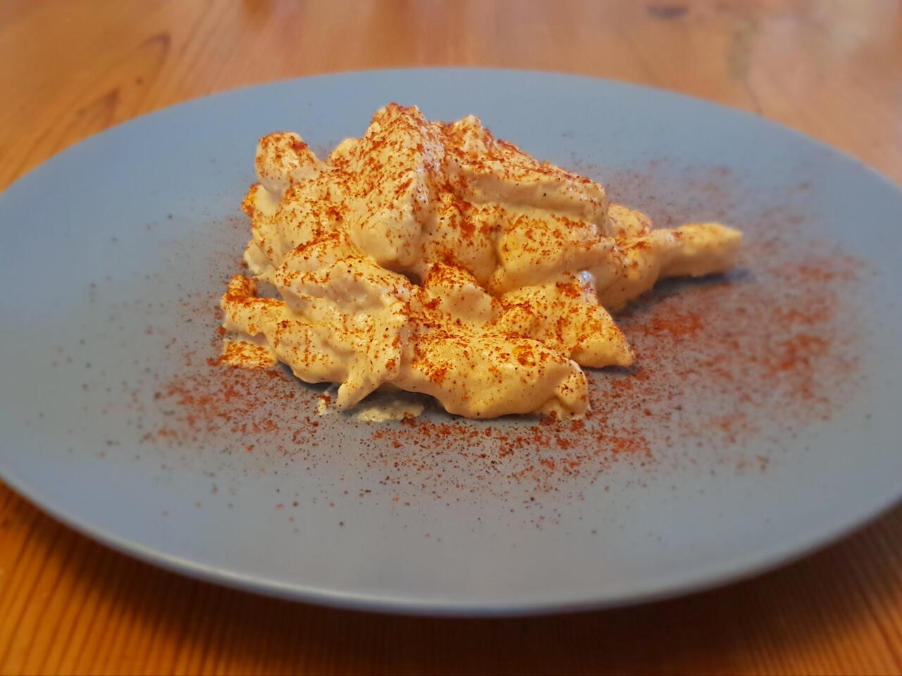 Mescolare in un contenitore la panna da cucina e la paprika.
