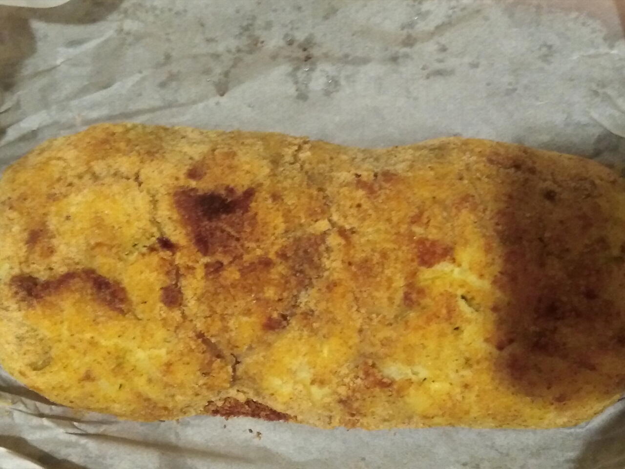 Aggiungete poi l'uovo, parmigiano,olive, prezzemolo e tonno. Infine la scorza di limone. Mescolate il tutto. Preparate un piano del tavolo con pangrattato e formate il polpettone con le mani. Metterlo in carta forno e aggiungere un cucchiaio di olio sopra il polpettone.