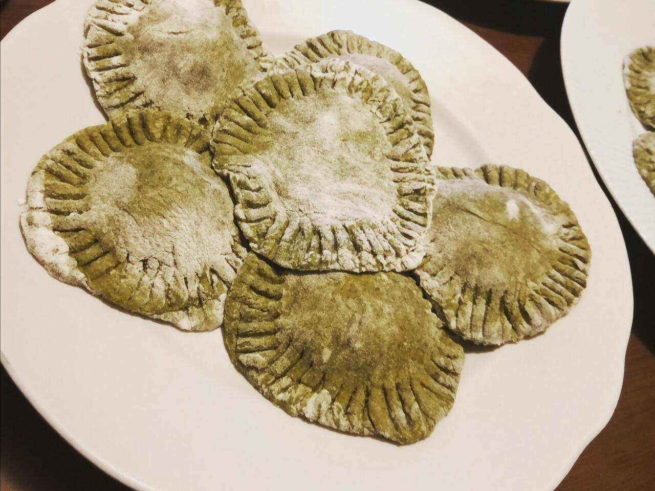 Prendiamo un cerchietto di pasta e con l'aiuto di un cucchiaino poniamo al centro dello stesso un po' di ripieno, prendiamo poi una forchetta e facendo della pressione nel bordo chiudiamo il nostro raviolo.