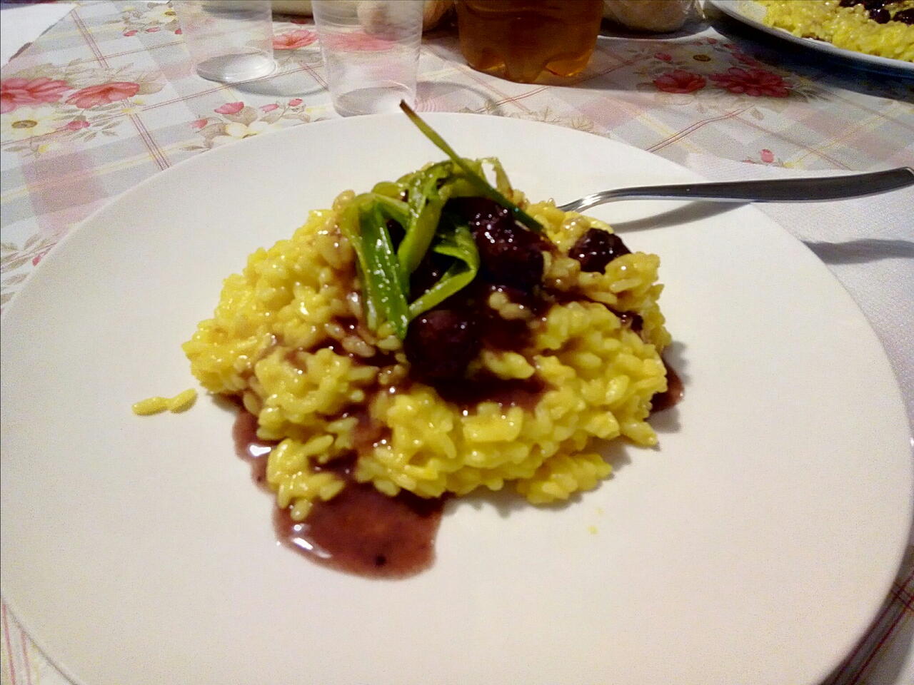 Risotto Zafferano Salsiccia Al Sangiovese e Gambi Cipollotto