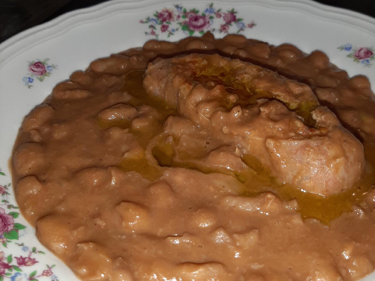 Aggiungere la salsa al pomodoro e un po d'acqua e sale, lasciare cuocere per 10-12 min, giusto il tempo per far consumare il sugo. Inserire i fagioli ( lasciati una notte in ammollo e giΓ lessati), un po di pepe nero e aggiustare di sale.