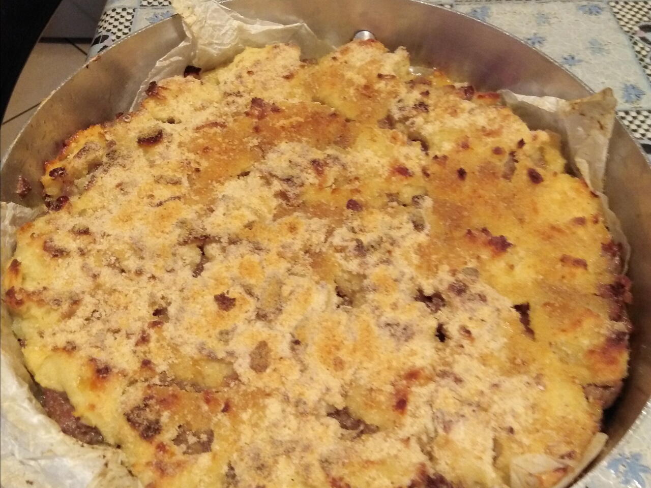 Aggiungiamo il formaggio grattugiato e la farina un po' alla volta. Prendiamo una teglia con carta forno e aggiungiamo metΓ impasto e poi il condimento con salsiccia e cipolla aggiungendo la mozzarella a dadini e ricopriamo con il resto del impasto facendo dei pezzi grossi per creare l'effetto sbriciolata.aggiungiamo un po' di pepe e cospargiamo con pangrattato.