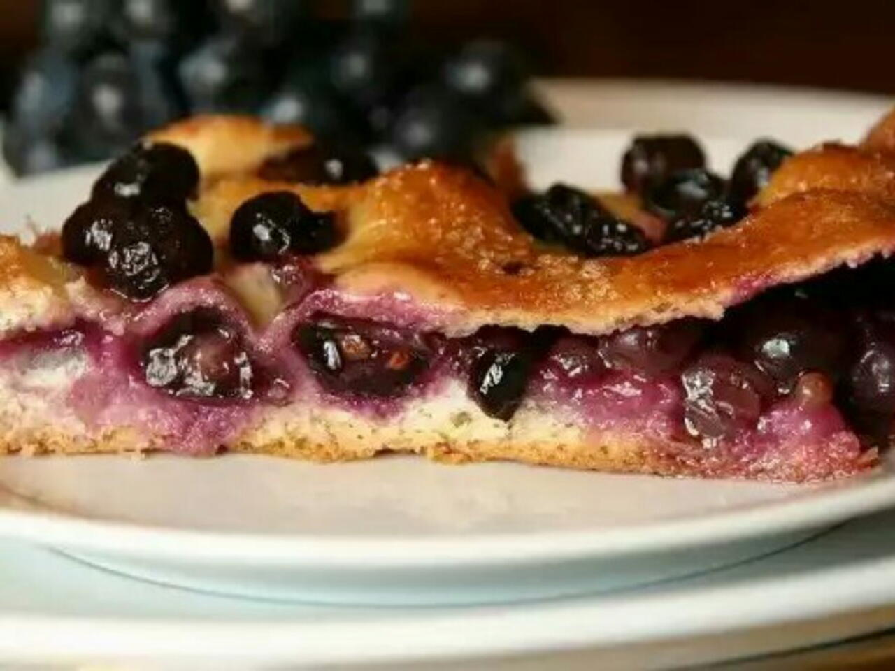 Distribuire la restante uva sulla superficie e cospargere 50 gr di zucchero e 2 cucchiai d’olio.