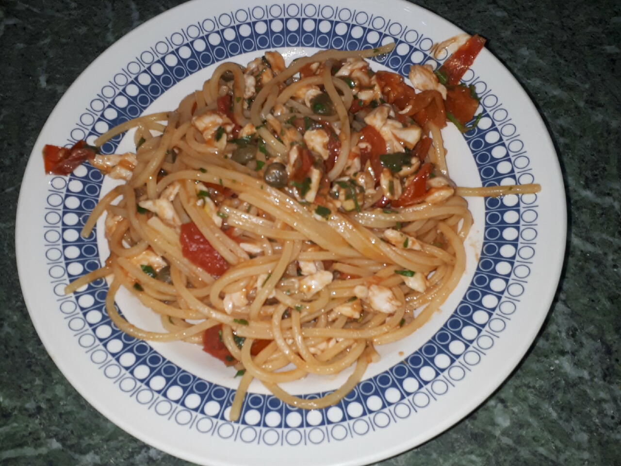 Mettere a scaldare un po' d'olio con lo spicchio d'aglio e poi aggiungere i pomodori (opzionale aggiungere i capperi). Poi buttare la pasta