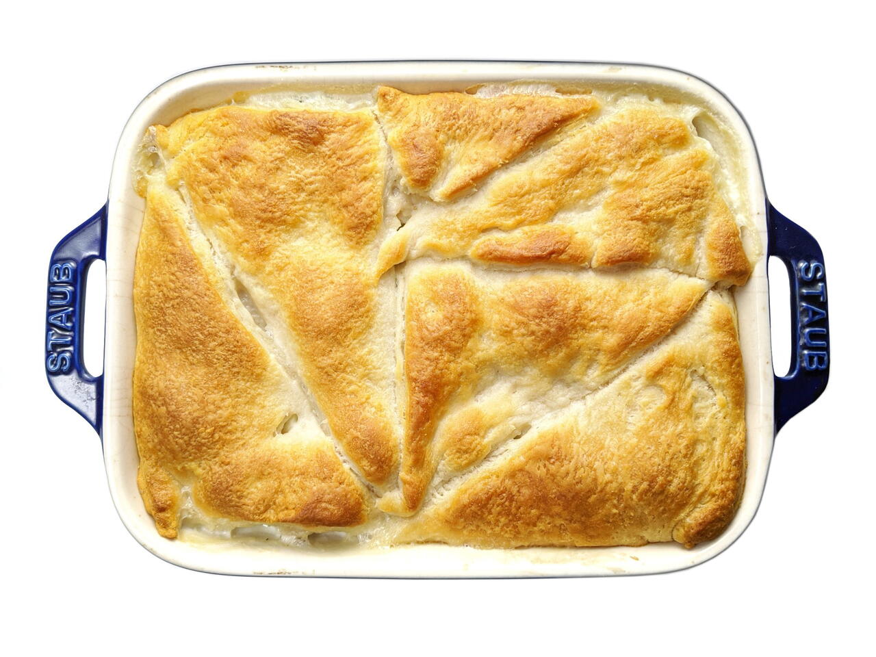 Pollo e piselli cremosi ricoperti da una crosta vellutata di pasta sfoglia.