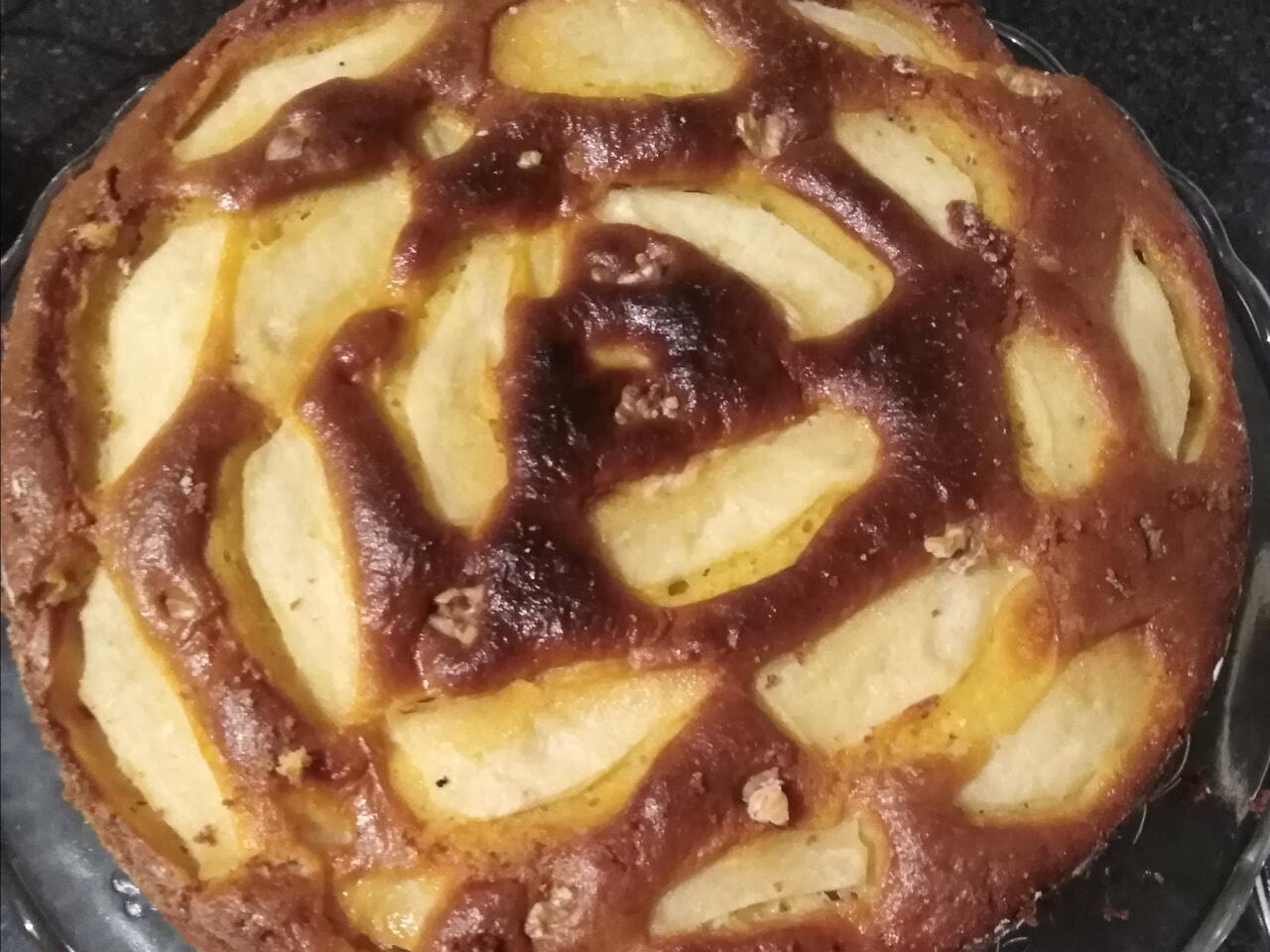 Aggiungere le pere tagliate a cubetti e girare. Mettere il composto in una tortiera imburrata ed infarinata.