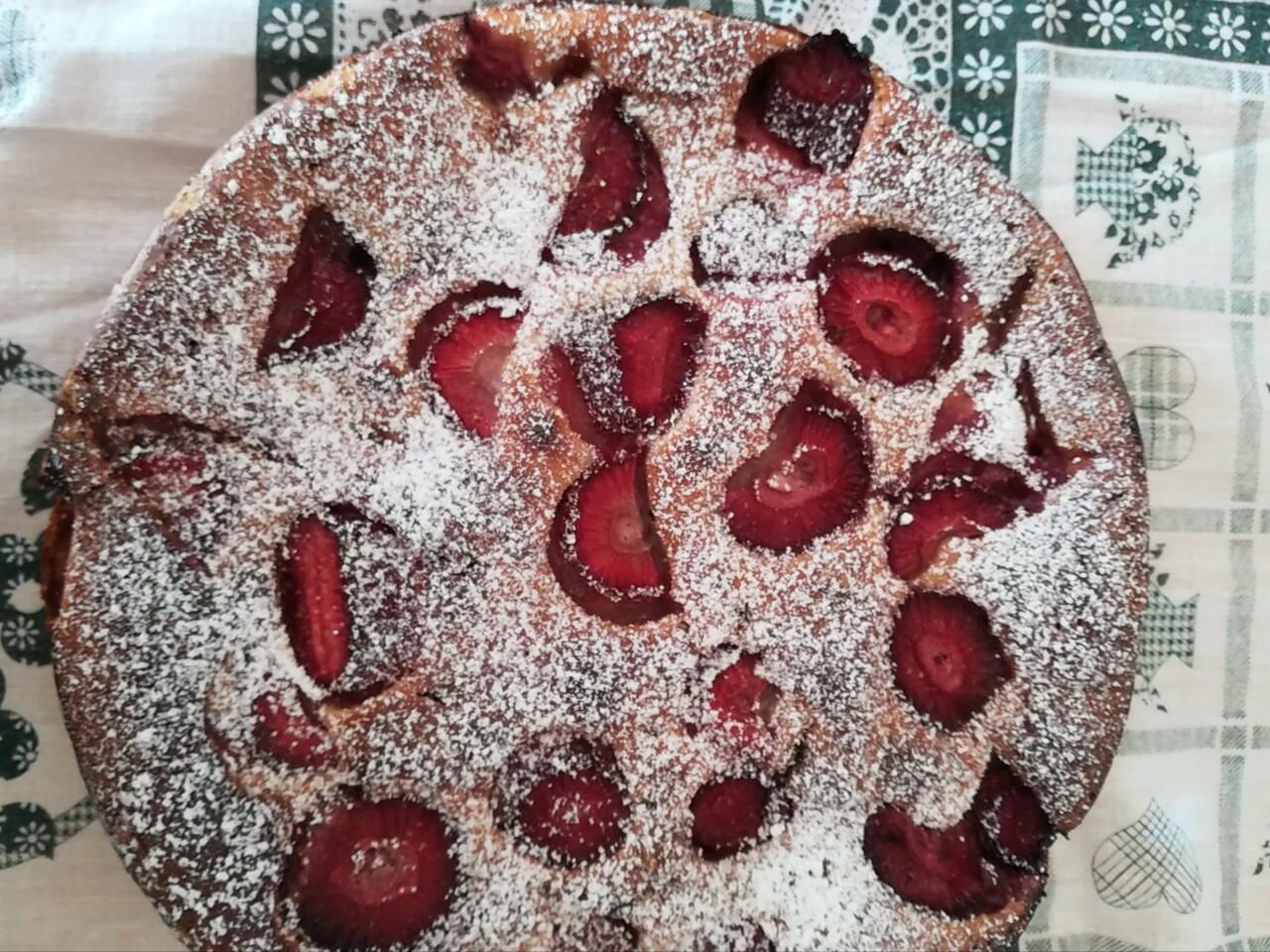 Prima di infornare, aggiungere il resto delle fragole, in modo da farle rimanere in superficie