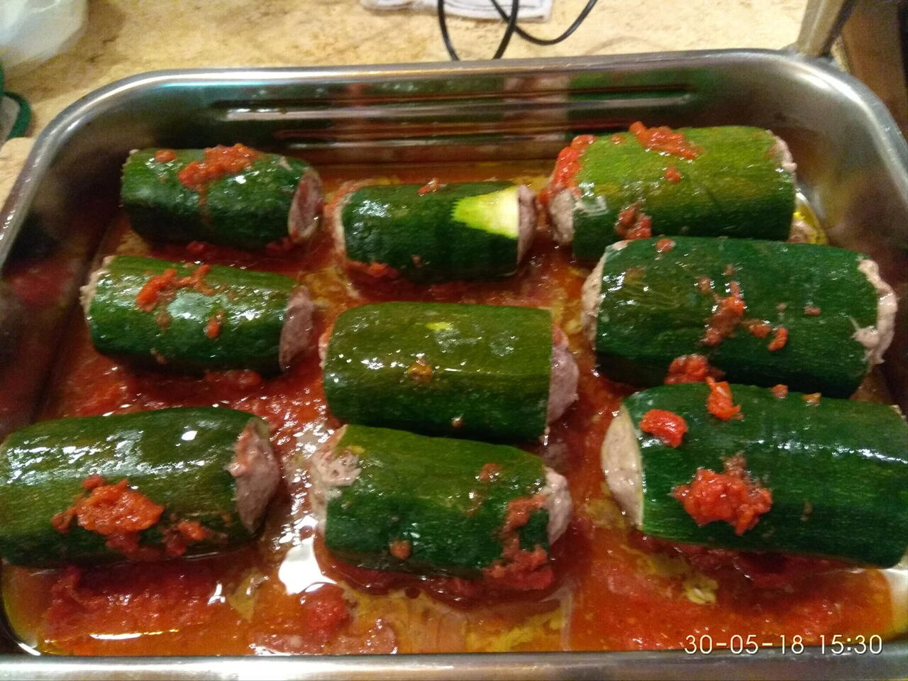 Adagiare le zucchine ripiene in una teglia da forno aggiungere un goccio di olio evo e infornare. Per rendere ancora più gustose aggiungere una lattina di polpa di pomodoro.