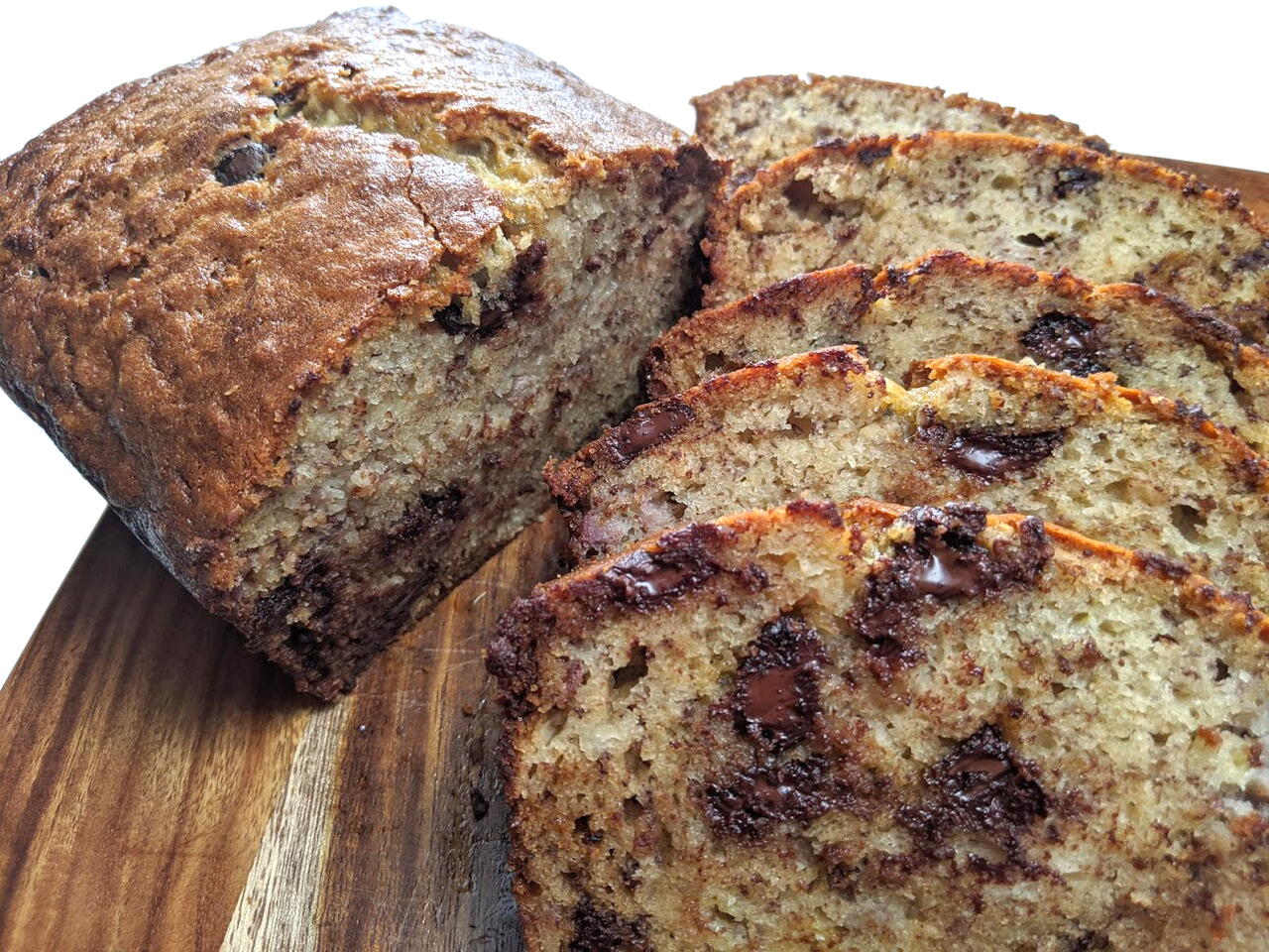 私のお気に入りの朝食のメニューのひとつです。熟しすぎたバナナが家にある場合の定番の、ふわふわのパンです。私はチョコレートチップを加えるのが好きですが、お好みでナッツを加えても美味しいです。