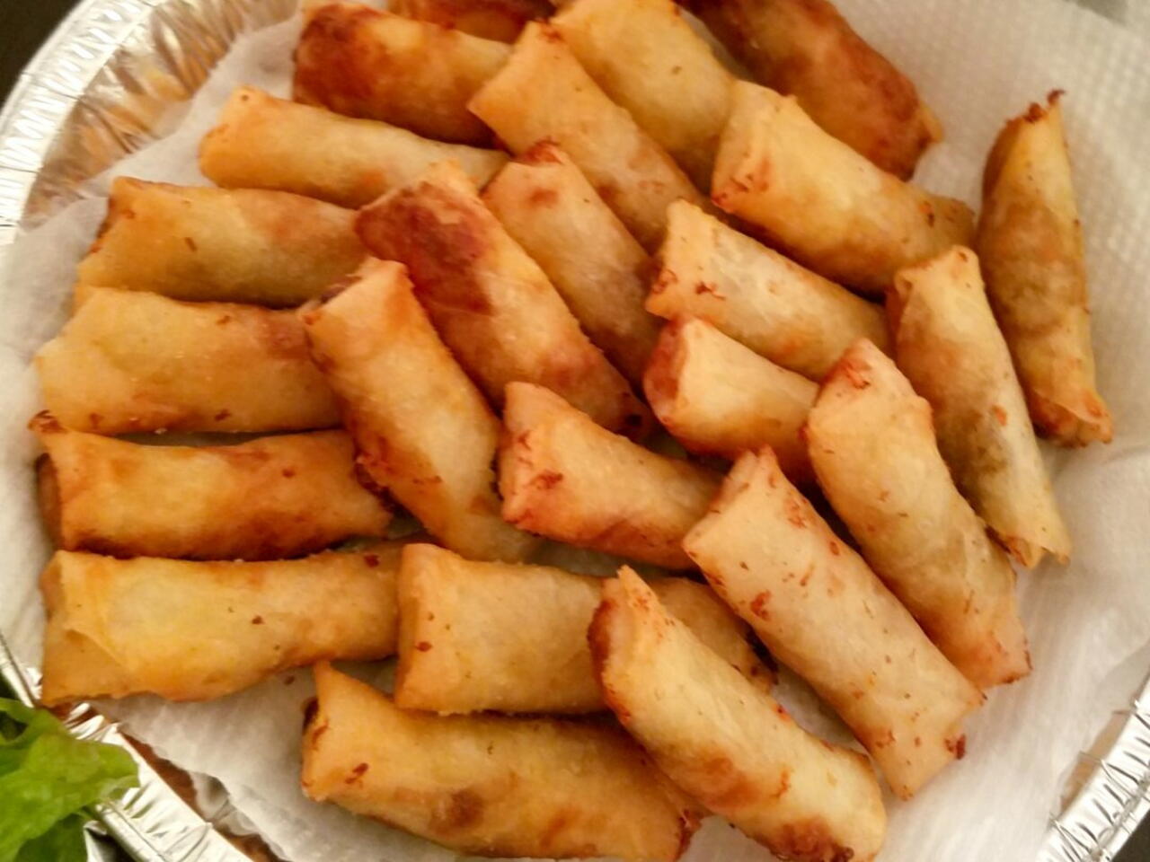 春巻きの皮10枚は1枚ずつ剥がしてからキッチンハサミで4等分に切る。玉葱半分、人参1/3本、ジャガイモ1個は細切りに。ジャガイモは水に晒して絞る。