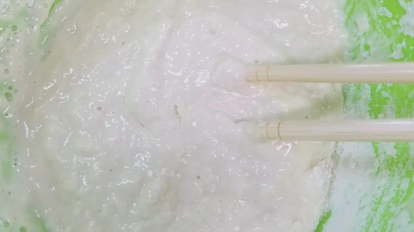 小麦粉100g、水150cc、レンジ加熱して刻み、水気を絞った大根の葉っぱ100g、だしの素大さじ2を混ぜる。
