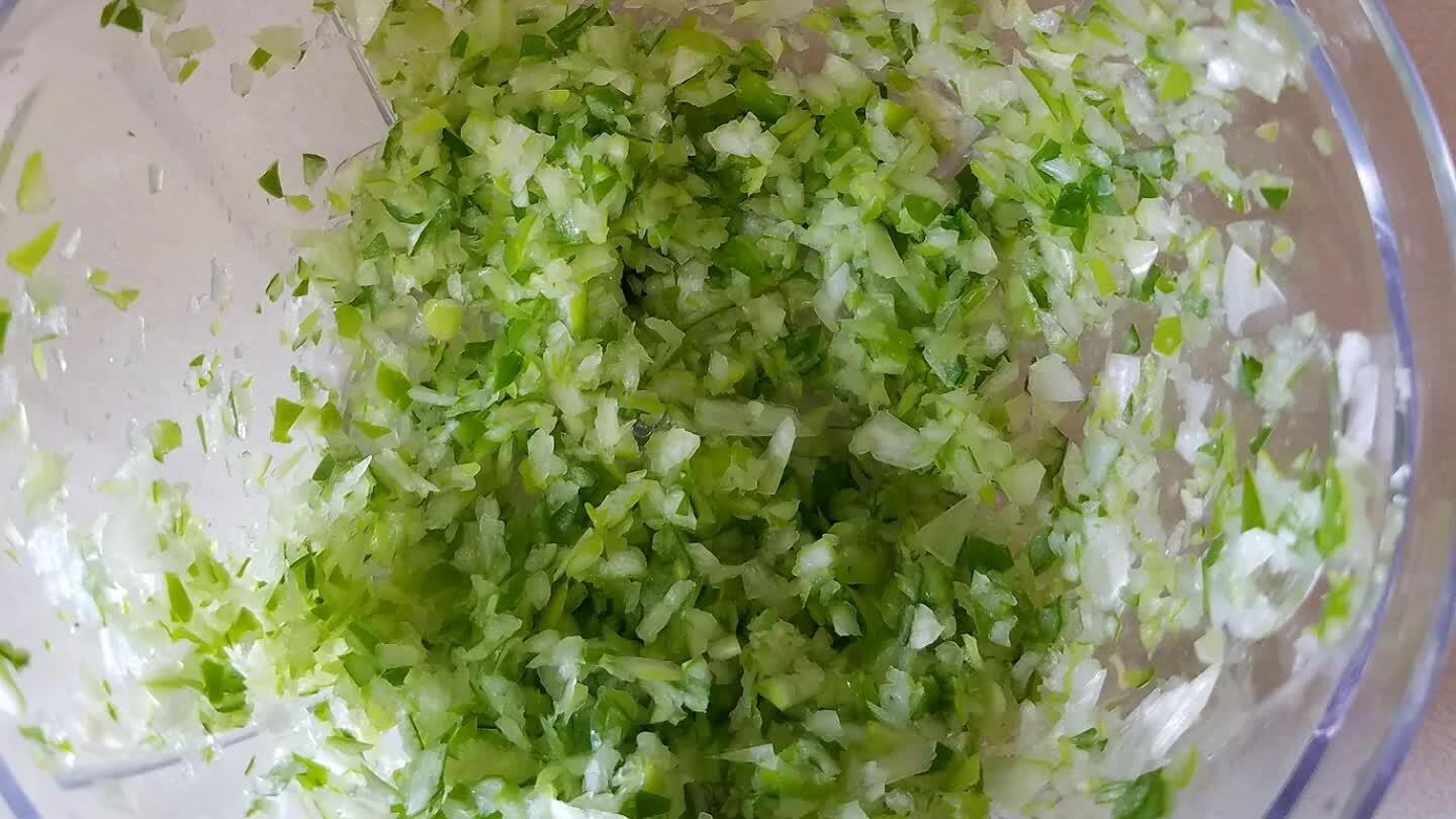 長ねぎ1/4本はみじん切りに。豚挽き肉100gと混ぜる。