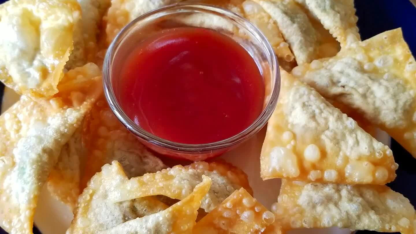 かりっと揚がったワンタンに甘酸っぱいソースを添えて☝️超コスパなおもてなし料理❗